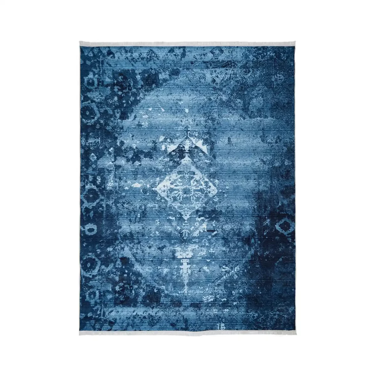 فرش ابریشم ماشینی ۱۰۰۰ شانه کد ۱۰۰۶۰۶ آبی