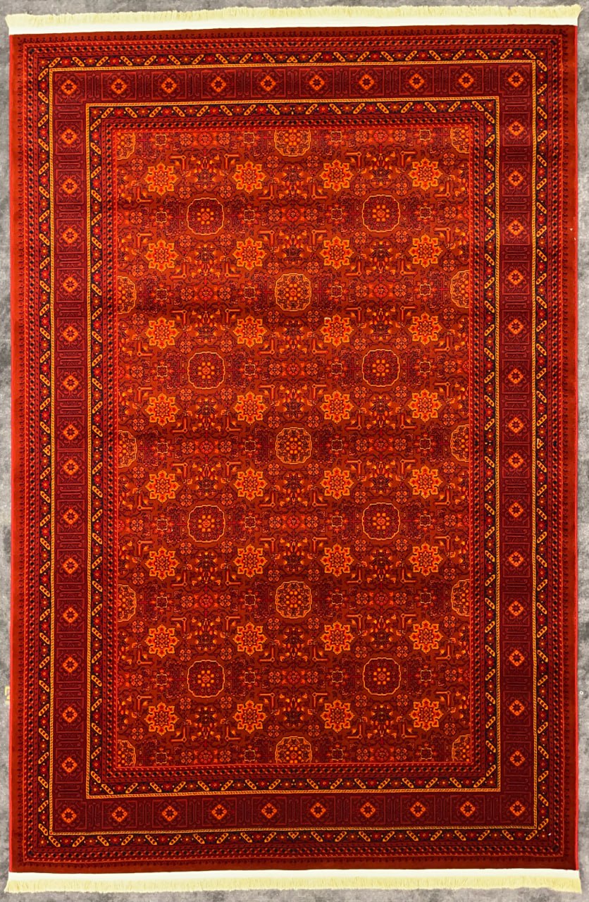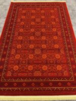 در این فرش ترکیب نقش های هنرمندانه را به خوبی می توان دید. در میانه این طرح ترنجی قرار دارد. در اطراف این ترنج نقش هایی با چینش جذاب در کنار هم قرار دارند. این فرش با الیاف جدید آکریلیک بافته شده است. الیاف استفاده شده در این فرش دوام و طول عمر بسیار بالایی دارند.